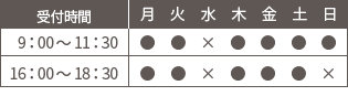 日曜日の診療は第1・3のみ(9:00~11:00受付)