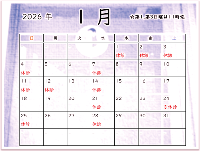 また、24日(土)は院長不在のため休診となりますが処方のみ対応可能です。